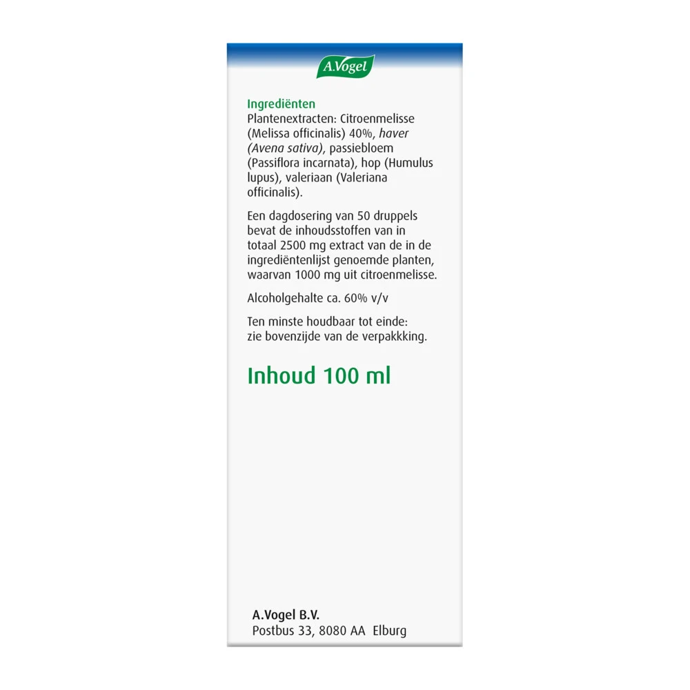 A.Vogel Dormeasan Citroenmelisse om lekker te slapen1*A.Vogel Dormeasan Citroenmelisse Nachtrust1* Druppelshelpt om lekker te slapen1*. Dormeasan Citroenmelisse Nachtrust1* druppels bevat een combinatie van vijf verschillende ingrediënten: passiebloem, citroenmelisse, haver, valeriaan en hop. A.Vogel Dormeasan Citroenmelisse helpt om lichaam en geest te ontspannen, lekker te slapen en uitgerust wakker te worden1*. De natuurlijke slaap blijft intact en je kunt op elk gewenst moment weer stop