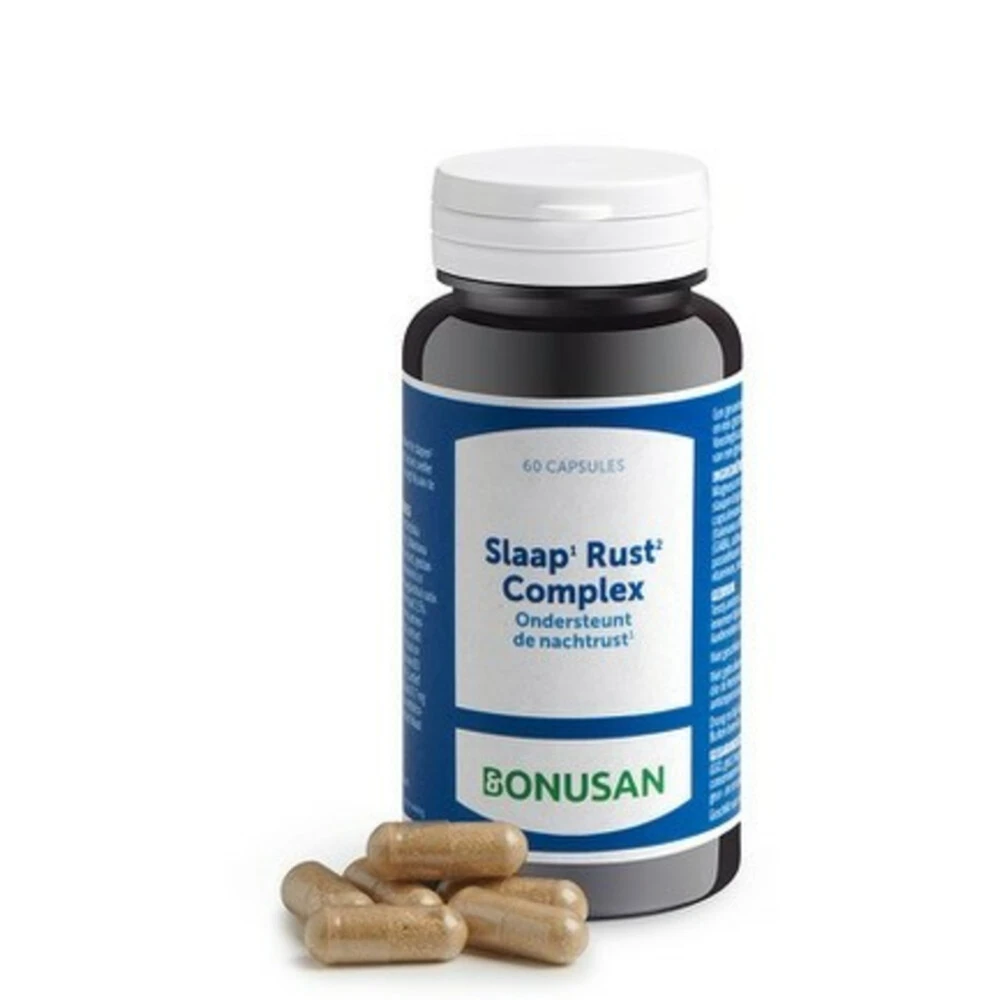 Bonusan Slaap*¹ Rust*² ComplexBonusan Slaap Rust Complex is door de unieke samenstelling, van natuurlijke stoffen en benodigde cofactoren, een zeer complete formule. Bonusan Slaap*¹ Rust*² Complex ondersteunt de nachtrust dankzij valeriaan en de rust door de toevoeging van Ashwagandha. Valeriaan¹ helpt bij het sneller in slaap vallen* en Ashwagandha² is ontspannend*. Daarnaast bevat Bonusan Slaap¹ Rust² Complex slaapmutsjeskruid, Griffonia simplicifol